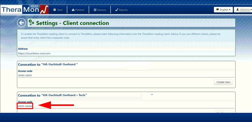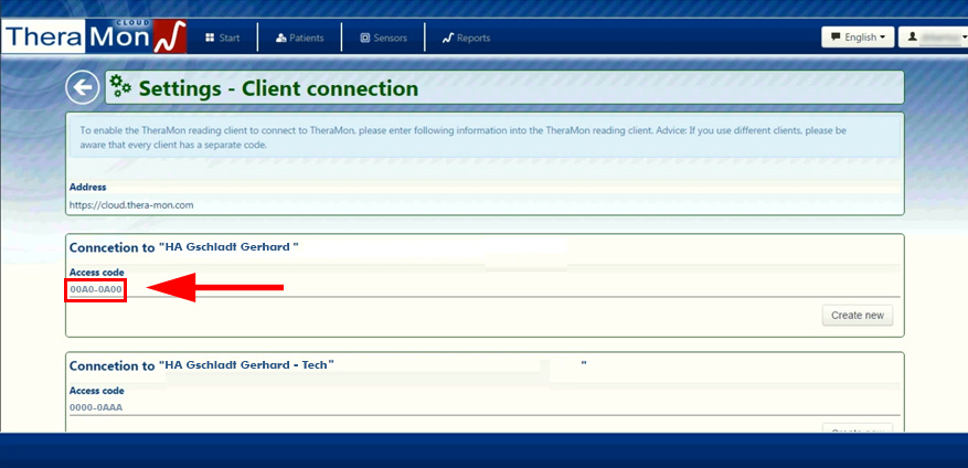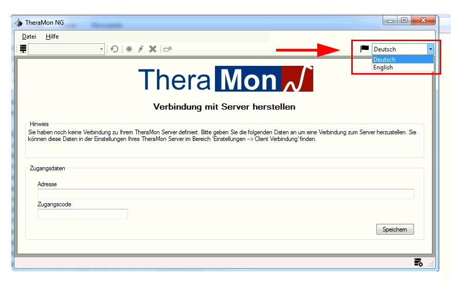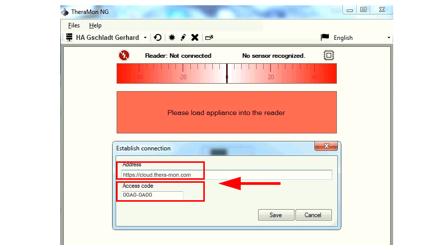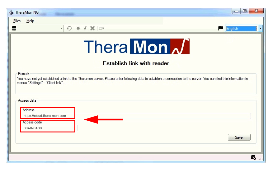 Após instalar e abrir o TheraMon NG, perceberá que ele pedirá um endereço e um código de acesso, para obter essas informações siga os passos abaixo.