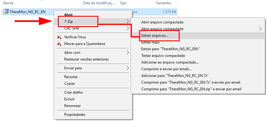 Dica: Caso não apareça a opção "Extrair", será necessário a instalação de um programa para extrair pastas com a extensão ".zip". Recomendamos o programa 7-Zip, você pode fazer o download gratuito acessando www.7-zip.org