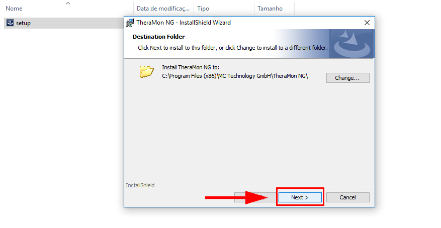 1.3 - Após extrair a pasta "TheraMon_NG_RC_EN.zip", abra o arquivo chamado "Setup". Clique em "Next" nos próximos passos, em seguida clique em Install, e por fim em "Finish".
